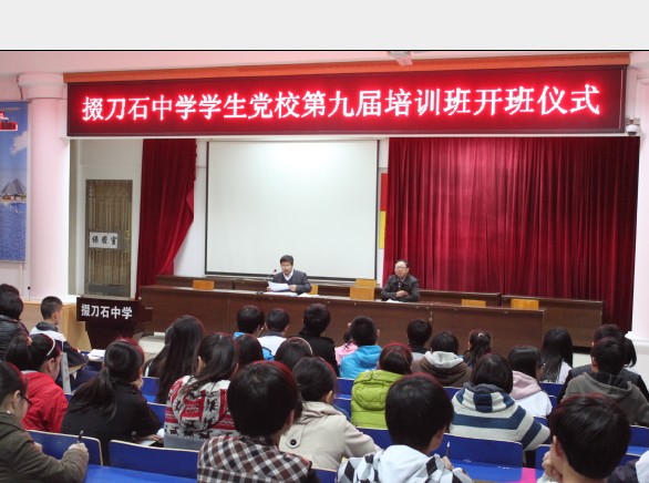 11月19日晚,掇刀石中学学生党校第九期培训班开班仪式在学校党员活动中心举行。来自高二、高三年级的55名学员参加。这些学员是在个人向党组织递交了入党申请书,年级党支部经过认真考察、遴选,报学校党办审核批准后,参加这次学习培训的。