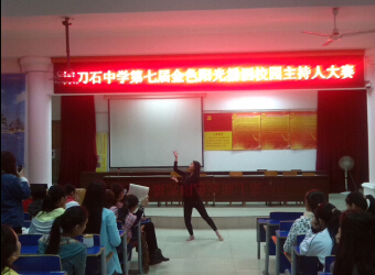 为了丰富我校学生的文化生活,展现我校学子青春、热情、富有活力的青春风采,为学校元旦晚会选拔优秀的节目主持人。2014年11月21日晚7:00,第七届“金色阳光播洒校园”主持人大赛在我校学术报告厅隆重举行。
