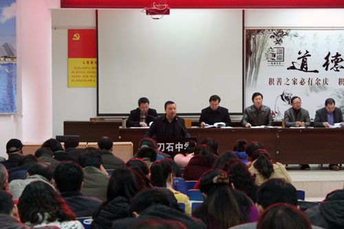 副校长毛惠平在会上总结了2014年高考备考工作,提出了今后在教学工作中需要突破的工作点。2014届高三(2)班班主任刘丰在会上介绍了先进的管理经验。高三化学备课组组长刘红林介绍了如何团结合作的备课经验。