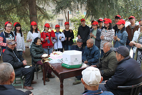 志愿者们首先给老人们送上集体生日祝福,喂一些不方便的老人吃蛋糕,让老人们体会到久违的庆祝生日的乐趣,感受到社会的关爱。接下来,志愿者们为老人们表演了精心准备的文艺节目。歌曲《父亲》催人泪下;傣族舞生动俏皮;具有地方特色的双簧表演逗得老人们合不拢嘴。志愿者们热情活泼的精神风貌感染了老人们,现场欢声笑语不断。表演结束之后,志愿者争抢着帮助老人们干一些力所能及的事情,就像对待自己的亲人一样拉着他们的手嘘寒问暖,给老人们捶背揉肩,帮老人整理房间打扫卫生。一个半小时很快过去,志愿者们同老人们依依惜别。