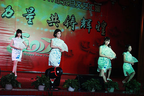 民族舞《红纱巾》以曼妙优雅、婉约优美的舞姿吸引了在场观众的眼球;柳小玲、丁媛媛老师和同学们联袂演出的歌伴舞《芦花》,体现了师生之间的深厚情谊;极具创意的小品《吃面》以风趣幽默的动作、诙谐调侃的语言令在场观众捧腹;老师们的太极扇表演《中国功夫》,更是将晚会推向了高潮;诗朗诵《我的中国梦》、武术表演《双节棍》、魔术表演《Good luck》等节目都成为晚会的一个又一个亮点。最后,晚会在动感欢乐的舞蹈《快乐恰恰》中圆满落幕。