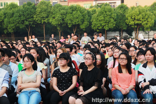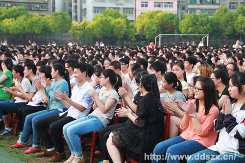 初夏傍晚的阳光温润柔和,雨后初霁的天空湛蓝明净,掇刀石中学的全体学生们放下繁重的课业,在老师们的带领下有序入场。最为难能可贵的是即将搏击于高考考场的高三学子们,他们在丝竹管弦的娓娓叙说中,一扫备考的紧张与疲惫。器乐合奏《喜洋洋》仿佛带着节日的喜悦拉开了这场音乐会的序幕,《十二月等郎》中的华彩段落《炊烟》《青草梗草青青》《好苗子别说傻话》《希望的花》以其浓郁、亲切的本土特色令师生们耳目一新,二胡独奏《长湖叙事曲》对乡村动物叫声惟妙惟肖的模仿使同学们倍感田园的亲切,女一号曾菊、男一号罗涛的精彩表演搏得了同学们如潮的掌声,《等郎调》深情忧伤重章叠唱散发着无限的艺术魅力。