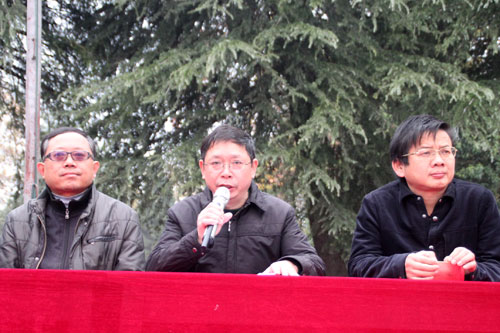 副校长解忠诚为运动会致开幕词。他代表学校领导对裁判员、工作人员付出的辛勤努力表示衷心的感谢,向准备在本次盛会中一展青春风采的同学们表达了良好的祝愿!他希望同学们在紧张的学习之余,学会劳逸结合,在体育运动中找到激情和活力,追求竞争和超越,陶冶情操,放飞心灵。接着,裁判员代表赵红丹老师、运动员代表杨天哲同学分别宣誓,学校党委书记杨清宣布运动会开幕。