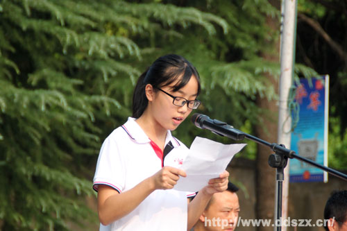 武汉某国防员教育基地张教官对同学们指出了殷切希望,高一(4)班许茹婷同学作为学员代表表达了同学们完成本次军训任务的信心和决心。