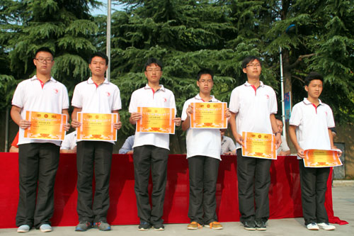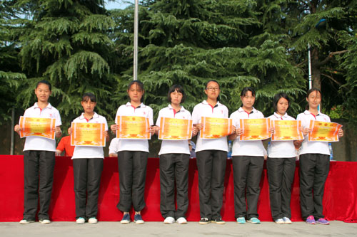 表演结束后,高一年级组刘丰主任宣读了军训优秀学员、内务整理的优秀寝室及汇报表演的获奖班级名单。校领导向先进个人与获奖班级颁发了奖状。全体学生用手语表演的《感恩的心》,把汇报表演推向了高潮。