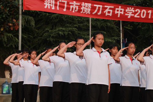 嘹亮的口号响彻校园,矫健的步伐展示自信。8月31日,掇刀石中学新生军训汇报表演暨总结表彰大会在运动场举行。校长杨清,副校长李锡平、解忠诚等领导出席大会。大会由政教主任吴桥梁主持。