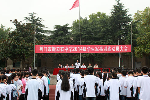 8月28日上午8时,掇刀石中学2014级高一新生军训动员大会在学校操场举行,来自14个班级的858名高一新生开始了紧张的军训生活。军训动员大会由副校长李锡平主持。