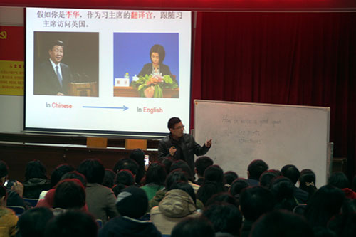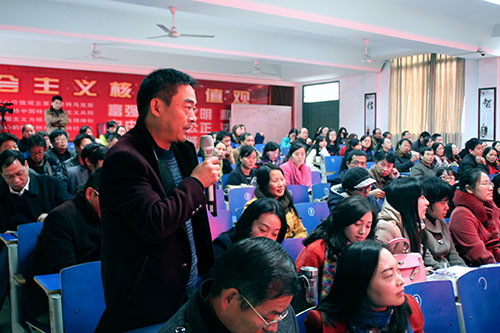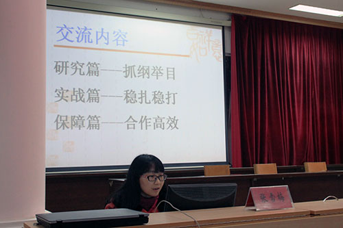8点30分,活动在河北衡水中学张雪梅老师的专题报告中拉开序幕。整个上午,张老师就衡中的成功做法进行了展示,并与全市教师亲切交流。下午1点40分,会议继续另外3个议程,首先由龙泉中学、钟祥一中、掇刀石中学介绍本校英语学科的备考经验,接着来自龙泉中学的郑云强、市外校的秦阳涛老师结合本校的备考心得进行了课堂展示,最后市教研员刘萍同志对我市后期高中英语学科高考备考教学进行了工作布置。