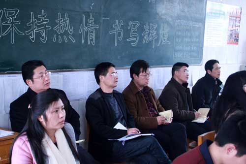 副局长张治鹏、教研室主任吴华、基础教育科科长郑松山走进高三年级课堂,随堂听了一节政治课。随后,调研组在二楼会议室听取了我校教学副校长毛惠平关于三月调考成绩和高考备考工作的情况汇报,并对听课及调研到的基本情况进行了反馈。调研组认为我校高三备考工作紧张有序,师生的精神状态良好。他们还对我校高三年级的高考备考工作进行了细致深入的指导并且提出了宝贵的意见和建议。