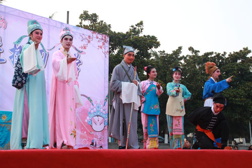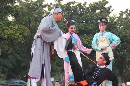 东宝中学的学生表演的折子戏《双撇笋》,以其浓郁的乡土气息,自然清新、灵动活泼的表演风格赢得了观众阵阵掌声。市艺术剧院为大家带来了花鼓戏《王瞎子闹店》,演员们诙谐的表演,扎实的唱腔功底,默契的乐器和声,为全校师生送上了一道原汁原味的戏曲文化大餐。