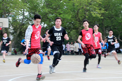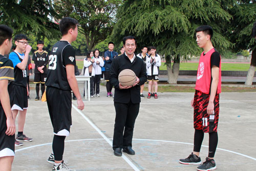 4月11日下午,我校学生男子篮球赛隆重开幕了。本届学生男子篮球赛由政教处主办,高二年级组和体育教研组承办,共有14个学生代表队参赛,将持续两周。开幕式由高二年级组政教主任杨宜勇主持。