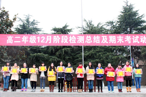 会上,年级支部书记柳小玲宣读了受表彰学生的名单,希望受表彰的同学珍惜荣誉,再接再厉;宣读了在“最美女生寝室”评比活动中受表彰的班级名单,并为寝室长颁奖。年级政教主任涂维平宣读了对个别学生的处分决定,对后期政教工作做了具体安排。高二(1)班滕王田子同学做了《冲刺期末,全力以赴》的典型发言,号召全体同学争分夺秒、锲而不舍、端正心态,全力备战期末考试。最后,年级主任鲁勇做了期末考试动员的重要讲话。他强调,目标决定结果,态度决定高度,方法决定成功,时间是重要保障。