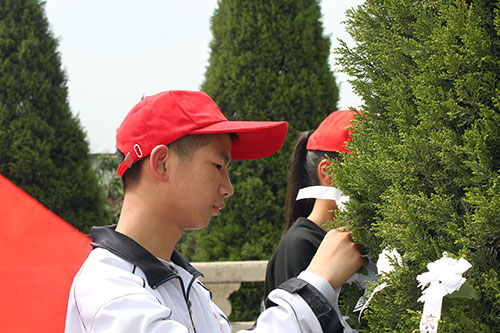 首先,全体师生带着沉重肃穆的心情,为烈士们敬献了花圈。接着,高一年级团总支书记陈李双琦代表全体团员青年诵读祭文,表达青年们对先烈的缅怀之情。最后,全体师生绕烈士纪念碑行走一圈,瞻仰了烈士纪念碑,并为烈士献上小白花。