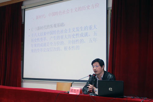 荆门市委党校副校长张旭平教授为全体与会人员做了题为《开启新时代中国特色社会主义新征程的行动指南》的报告,从新时代、新思想、新方略、新战略、新纲领五个方面解读十九大报告。讲解深入浅出,理念新,信息广,传递了党的十九大精神,让所有聆听者备受鼓舞和启迪。