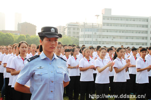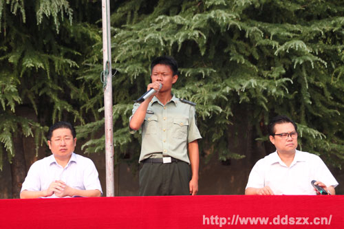 武汉某国防员教育基地张教官对同学们指出了殷切希望,高一(4)班许茹婷同学作为学员代表表达了同学们完成本次军训任务的信心和决心。