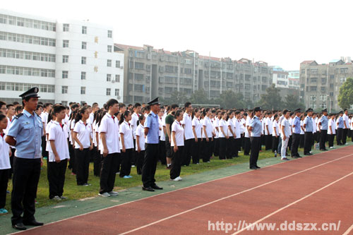 校长杨清作了动员报告。他首先对高一新同学表示欢迎。他说,高中是人生中的一个新阶段,军训是踏入高中的第一课,在这一课中,同学们要学会做人,吃苦耐劳,迎接挑战,把握自由与纪律的尺度。这一课也是对同学们身体素质和心理素质的一次考验。他号召同学们在军训中以军人为榜样,学习他们以苦为乐、坚忍不拔、不断奉献、不求索取的博大胸怀。他要求同学们以一名“军人”的身份严格要求自己,听从指挥,服从命令,严格遵守军训纪律和作息时间,以“流血流汗不流泪,掉皮掉肉不掉队”的精神,圆满完成军训任务。