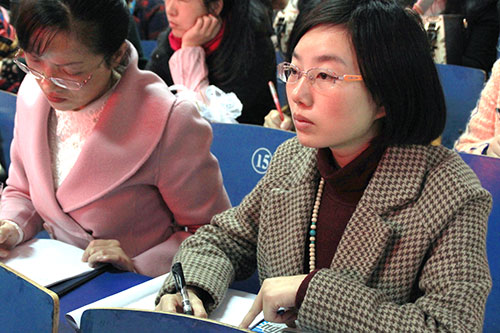 8点30分,活动在河北衡水中学张雪梅老师的专题报告中拉开序幕。整个上午,张老师就衡中的成功做法进行了展示,并与全市教师亲切交流。下午1点40分,会议继续另外3个议程,首先由龙泉中学、钟祥一中、掇刀石中学介绍本校英语学科的备考经验,接着来自龙泉中学的郑云强、市外校的秦阳涛老师结合本校的备考心得进行了课堂展示,最后市教研员刘萍同志对我市后期高中英语学科高考备考教学进行了工作布置。