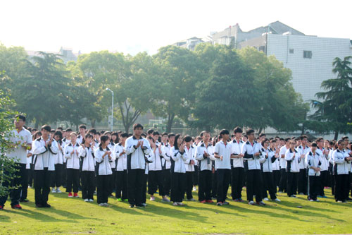 在简短的升旗仪式之后,副校长毛惠平代表全校师生发表了热情洋溢的讲话。他肯定了全体高三师生在备考中艰苦卓绝的精神,回顾掇中辉煌的高考历史,表达了对2016届学子的殷切期盼。