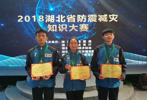 4月23日上午, 2018湖北省防震减灾知识大赛圆满落幕,由掇刀石中学窦天宇、刘景轩、张资浩组成的荆门市高中组代表队,在比赛中喜获三等奖。