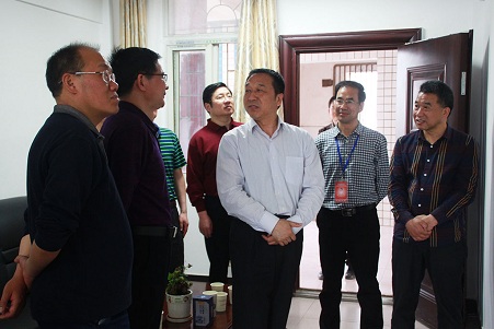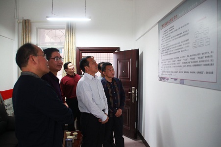许贤德主席一行在校党委副书记、校长罗小军,党委书记杨清,副校长毛惠平等领导的陪同下参观校园之后,径直来到“曾志辉名师工作室”。大家驻足工作室,就工作室的相关陈设、现状以及发展进行了调研。区政协主席许贤德、 副主席熊明华以及民盟掇刀支部主委、区工商联主席吴荣华等领导对工作室的前景也提出了许多颇富创意、切实可行的建议和措施。整个视导期间,气氛亲切融洽,充满着诗情画意和文化底蕴。