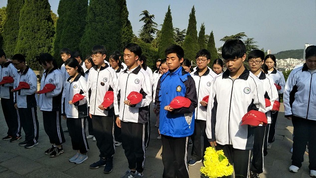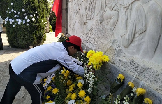 到达烈士陵园,在高一年级团总支书记苏静蕾同学的主持下,扫墓活动正式开始。首先,全体志愿者默哀一分钟,向革命先烈表达深痛的哀悼和无尽的敬仰之情。