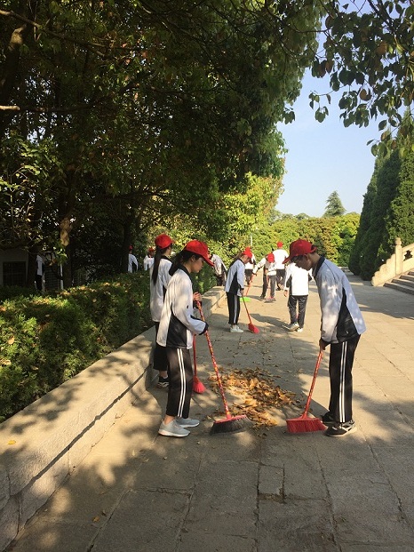 在烈士陵园开展卫生大扫除志愿服务活动。