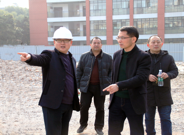 12月13日上午10点48分,荆门市掇刀石中学教学楼二期工程开工啦!学校党委副书记张文、副校长王陈华、副校长黄红兵、办公室主任吴桥梁和总务处主任鲁勇出席开工仪式。